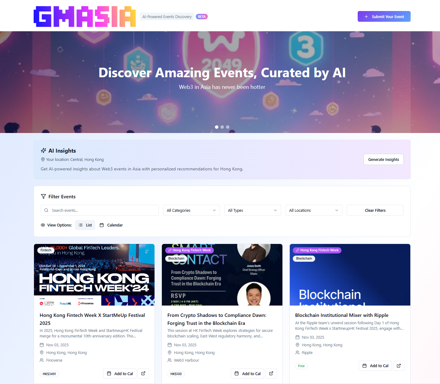 GMAsia is an AI-powered platform connecting Web3 communities across Asia and beyond. Scattered events? Fragmented networks? No more.