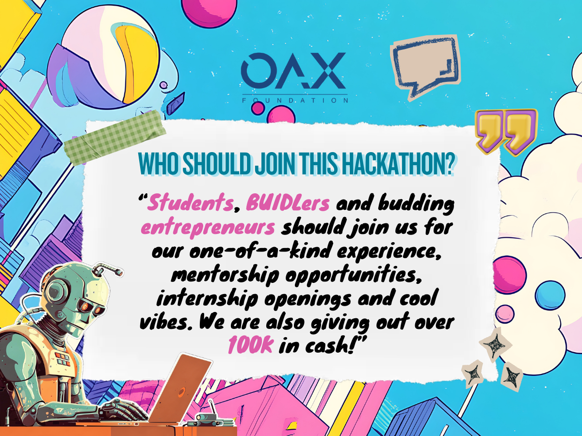 Our goal with this support is clear: to discover and nurture promising projects with impactful AI applications - especially in the education, upskilling space, we project exponential growth from our research data. We’re eager to help standout teams take their ideas to the next level through the OAX Foundation Award, providing mentorship, judging involvement, ideation guidance, and meaningful post-hackathon collaboration.
